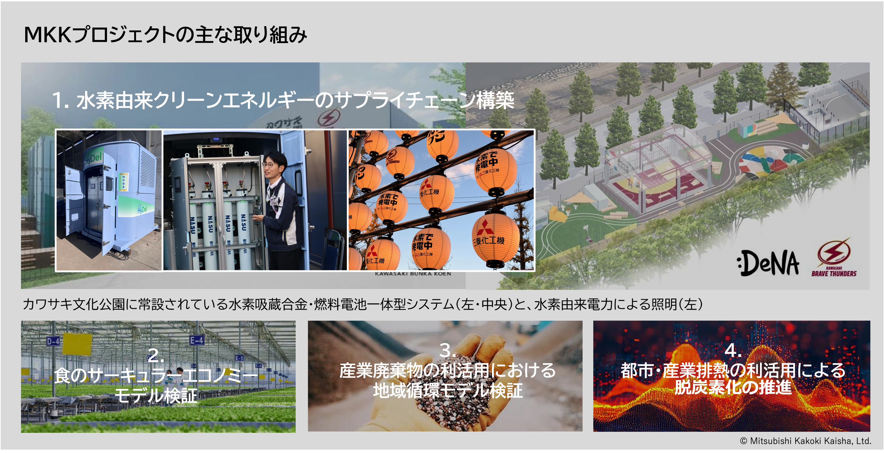 その⼀つとして、川崎発の技術・ビジネスモデルで世界を循環社会に変えるプロジェクト「MKKプロジェクト by 三菱化⼯機( https://www.kakoki.co.jp/mkkpj/ )」を2025年7⽉に発⾜。三菱化⼯機が有する環境対応・創エネルギー技術と共創パートナーが有するアセットやノウハウを活⽤・融合させ、川崎発の環境技術の確⽴および社会課題解決ソリューション・ビジネスモデルの創出を⽬指した取り組みを開始しています。