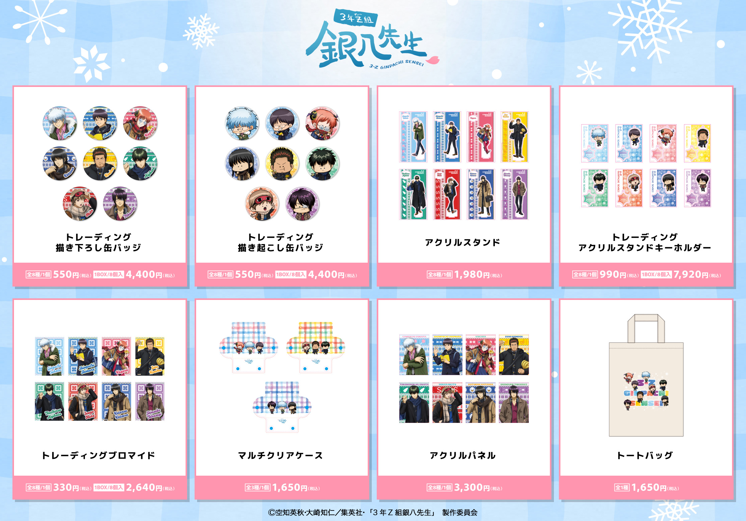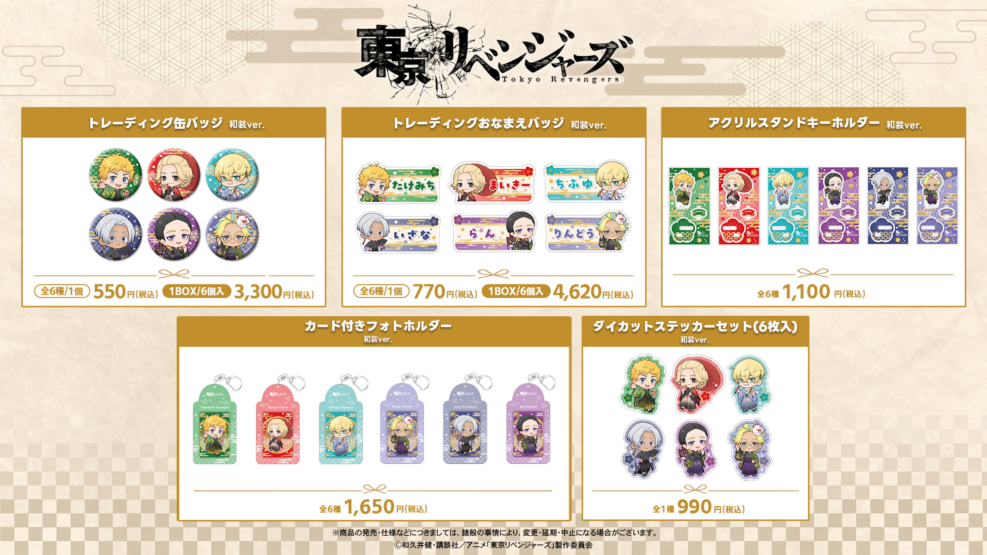 今回のフェアでは、DeNAが企画・開発した多種多様なグッズを販売します。TVスペシャルアニメ『五等分の花嫁*』、TVアニメ『SAKAMOTO DAYS』、TVアニメ『3年Z組銀八先生』、TVアニメ『SPY×FAMILY』、TVアニメ『ダンダダン』、TVアニメ『東京リベンジャーズ』、TVアニメ『Dr.STONE』、TVアニメ『NARUTO-ナルト- 疾風伝』の8作品から、描き下ろしイラストを活用したグッズなどを多数展開します。